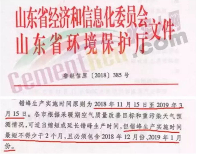 二月中旬的時候山東棗莊棗莊市生態(tài)環(huán)境局及棗莊市工業(yè)和信息化局聯(lián)合發(fā)布《關(guān)于補齊水泥企業(yè)錯峰生產(chǎn)時間的通知》,要求在2018年冬季承擔(dān)居民供暖、協(xié)同處置城市垃圾或危險廢棄物等保民生任務(wù)未能執(zhí)行秋冬季錯峰生產(chǎn)的企業(yè)或熟料生產(chǎn)線,要在2019年3月16日至2019年4月30日和2019年10月1日至2019年11月14日兩個時間段內(nèi),停窯補齊按70%生產(chǎn)負荷折算的停窯天數(shù)。