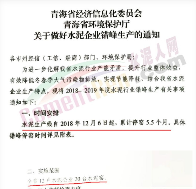 內(nèi)蒙古自治區(qū)經(jīng)濟和信息化委員會、內(nèi)蒙古自治區(qū)環(huán)境保護廳聯(lián)合印發(fā)《關(guān)于2018-2019年度采暖季水泥企業(yè)錯峰生產(chǎn)的通知》根據(jù)自治區(qū)東部地區(qū)大多數(shù)水泥熟料企業(yè)的要求,呼倫貝爾市、興安盟、通遼市、赤峰市四盟市的水泥熟料企業(yè)原則上從2018年11月15日至2019年4月15日全面實行錯峰生產(chǎn),期限5個月。
