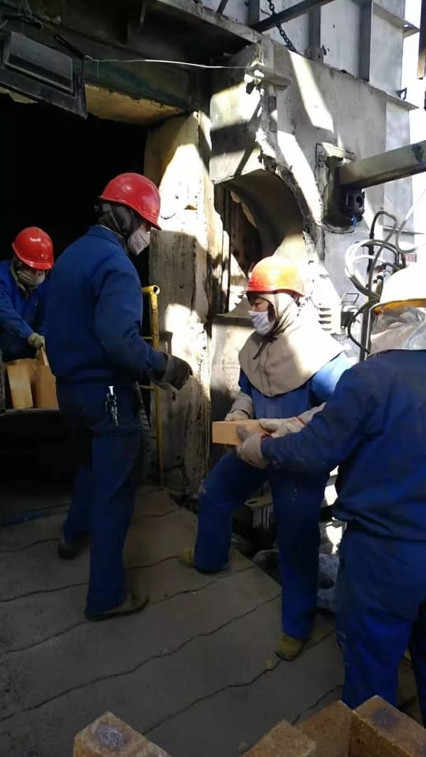 此次春季停窯大修,各相關(guān)部門精心組織制定檢修方案,嚴(yán)格按照設(shè)備檢修計劃,在保證安全環(huán)保的前提下,克服嚴(yán)寒,按質(zhì)按量完成每一項檢修任務(wù)。外協(xié)單位也用心、細(xì)心、精心去對待每一項工作,窯內(nèi)27米耐火磚系統(tǒng)部分材料的更換工作直接關(guān)系到該窯今后的安全運行,為此砌磚和積料鑲嵌的質(zhì)量在本次中修中就顯得尤為重要。集團公司多方協(xié)調(diào)確定由金川實業(yè)筑爐公司完成此次工作。雖然是第一次和金川實業(yè)筑爐公司配合完成此次砌筑工作,但是一面小紅旗,一張告知卡彰顯了他們的與眾不同。檢修的職工,按照檢修工藝要求,精益求精,堅持“一砌、二看、三檢查、四調(diào)整、五補救、六驗收”的施工原則,確保了每塊磚縫平直、火泥均勻、磚面平整,參加人員還利用穿插施工時機,及時對已鑲砌好的磚體加裝鎖磚板,有效保證了檢修質(zhì)量,還分別對窯尾舌頭處及窯門口、預(yù)熱器系統(tǒng)、篦冷機內(nèi)部灌注澆注料。在本次檢修工作中,生料車間、制成車間、化驗室在本車間系統(tǒng)檢修任務(wù)重的情況下,又抽出崗位工和維修人員支援燒成車間,發(fā)揚敢打硬仗的金泥作風(fēng),在火熱的現(xiàn)場譜寫一曲曲火熱的贊歌。