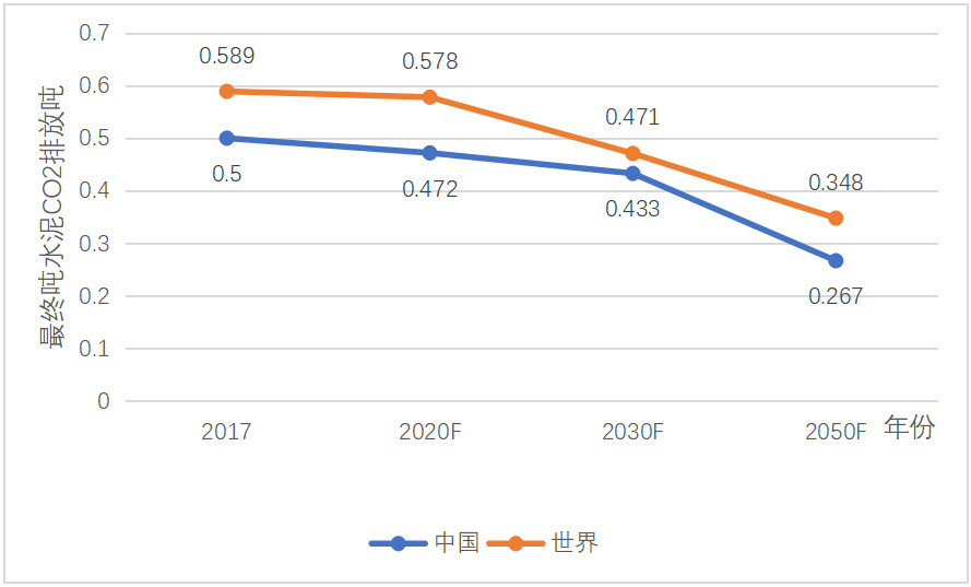 2030年和2050年,世界水泥工業(yè)噸水泥二氧化碳排放量,將分別為0.471噸,和,0.348噸,2050年比2017年減少40.9%;中國則分別為0.433噸和0.267噸,相應(yīng)地減少46.7%??梢钥闯?,2050年,中國的這項指標(biāo),比世界均值先進不少,主要是得益于CCS技術(shù)在中國的發(fā)展應(yīng)用較廣。