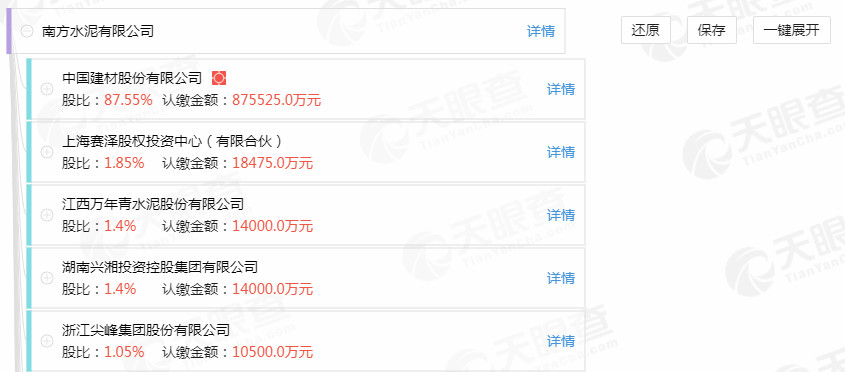 據(jù)水泥人網(wǎng)了解,蕪湖南方水泥有限公司為上海南方水泥有限公司100%控股企業(yè),而上海南方水泥有限公司的大股東是中國建材股份有限公司旗下的南方水泥有限公司。