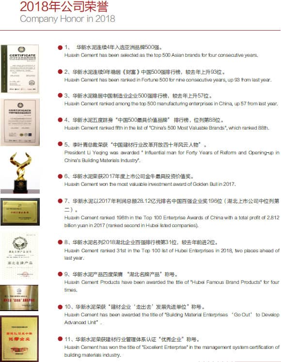 日前,華新水泥發(fā)布了《2018年華新水泥企業(yè)社會責(zé)任報告》詳情如下: