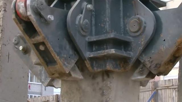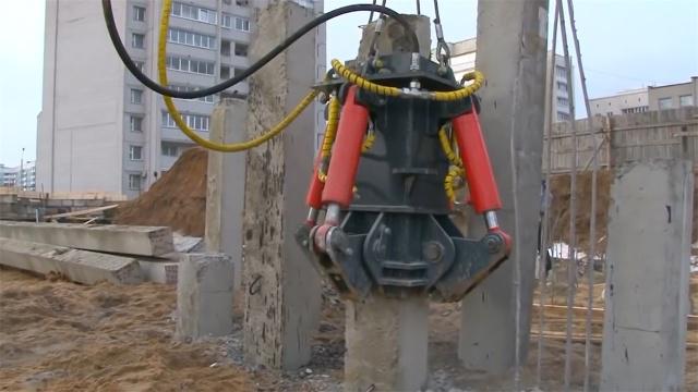 機(jī)器作業(yè)的時(shí)候,工人們需要將這個(gè)設(shè)備的氣缸和水泥柱對(duì)準(zhǔn),當(dāng)設(shè)備不斷下降的時(shí)候,氣缸就會(huì)包裹住水泥柱,接著切樁機(jī)上配有的液壓裝置就會(huì)作為一個(gè)驅(qū)動(dòng),位于切樁機(jī)底部的鉗口就會(huì)壓把頭壓裂。