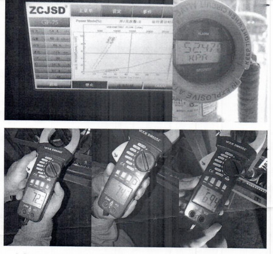 2018年11月16日,雙方相關(guān)人員再次測試數(shù)據(jù)為壓力52.84Kpa,功率為45.8kw,實測電流為72.9A,68.6A,66.2A,與10月22日測數(shù)據(jù)相差無幾。