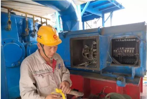 機(jī)電車(chē)間電氣維修工李兵正在對(duì)1號(hào)窯主電機(jī)進(jìn)行仔細(xì)檢查。
