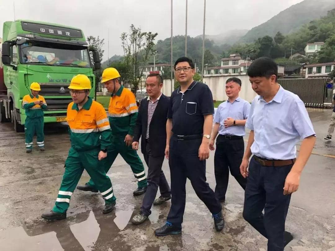 堯斯丹副省長(右三)、張平副市長(右二)、賈利華縣長(右一)實(shí)地查看生產(chǎn)現(xiàn)場