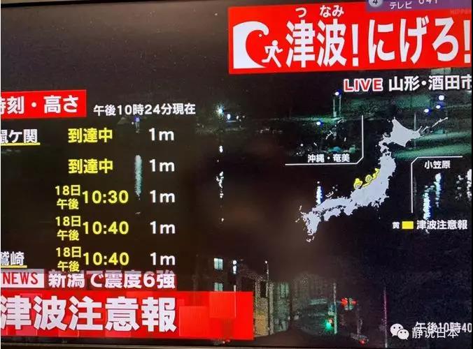 據(jù)報道稱,這次地震是自去年9月,北海道厚真町發(fā)生7級地震以來,日本國內(nèi)發(fā)生的最強烈的地震。日本地震發(fā)生之后日本各大電視臺均取消了預(yù)定節(jié)目的播出,在地震發(fā)生之后5分鐘開始,各大電視臺的屏幕打出了“海嘯!趕快逃命”(津波!にげろ!)的醒目紅字,播音員連續(xù)不斷地呼叫沿海地區(qū)的居民立即逃到高處,不要在海岸邊停留,海嘯不只一次,還可能會出現(xiàn)二次、三次。這樣的呼叫,持續(xù)了近一個小時。