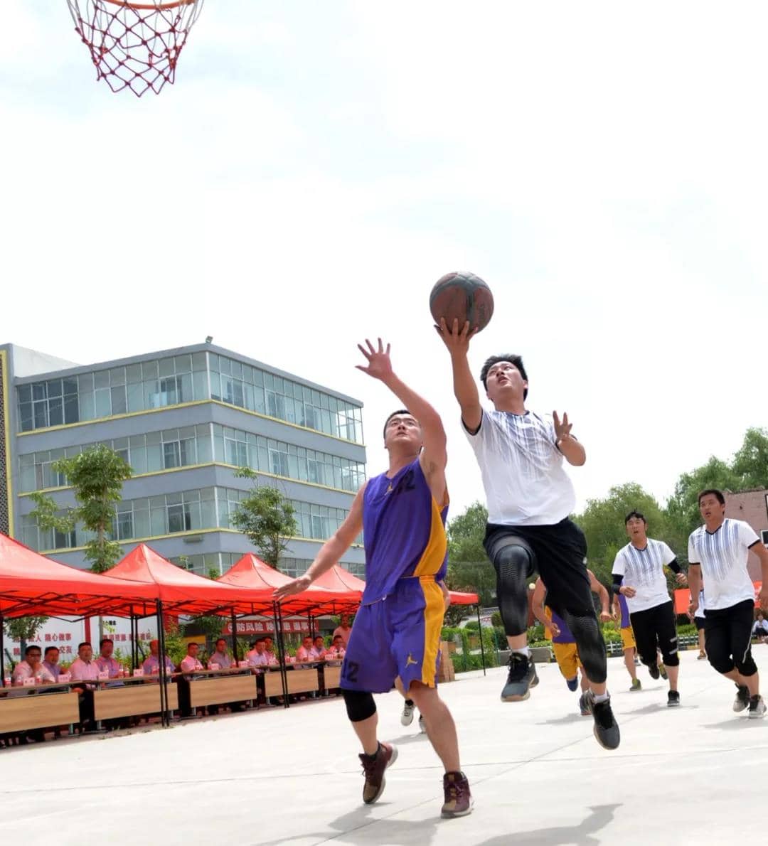 現(xiàn)場(chǎng)考察結(jié)束后,雙方即展開籃球友誼賽事。蘭州商砼公司常務(wù)副總張慎言同志致歡迎詞,對(duì)中建五局三公司的到來(lái)表示歡迎,介紹了公司發(fā)展理念,表示將繼續(xù)為中建五局三公司各項(xiàng)目提供優(yōu)質(zhì)的產(chǎn)品和良好的服務(wù),努力維護(hù)雙方的合作關(guān)系,進(jìn)一步深化合作領(lǐng)域。隨后聯(lián)誼賽正式鳴哨開賽。