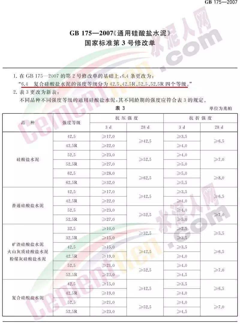 GB175-2007《通用硅酸鹽水泥》3號(hào)修改單