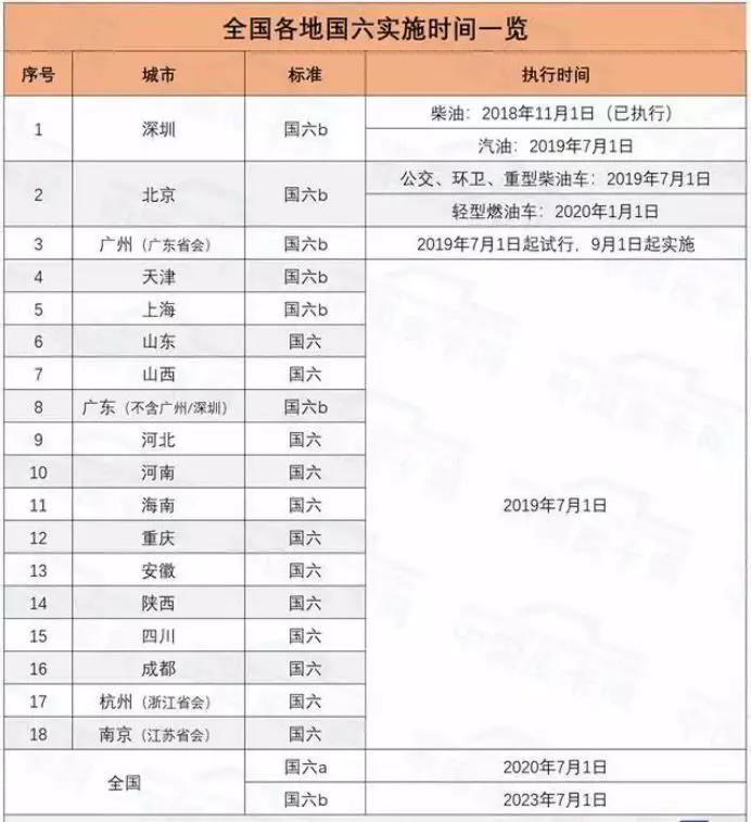 全國各地機(jī)動(dòng)車執(zhí)行國六時(shí)間表發(fā)布