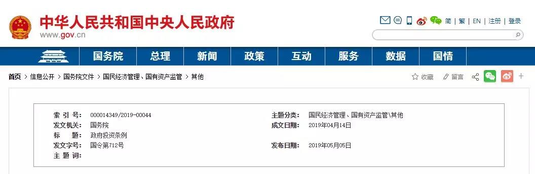 7月1日起施行《政府投資條例》