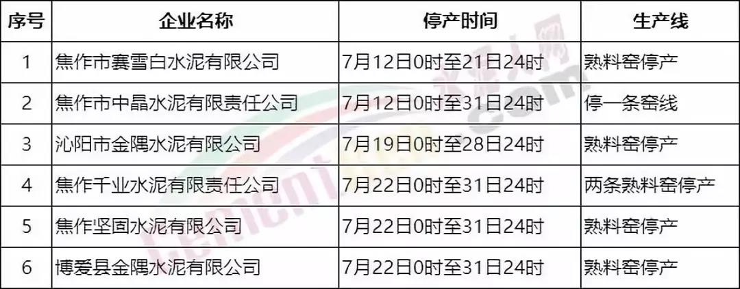 其中博愛縣金隅水泥有限公司、沁陽市金隅水泥有限公司等六家水泥企業(yè)在滿足排放濃度的前提下實施停限產(chǎn),詳情如下: