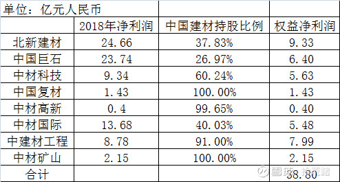 如上面的表格所示,中國建材非水泥業(yè)務貢獻的凈利潤合計有38.8億元人民幣,按照10倍PE計算,對應的估值至少388億元人民幣