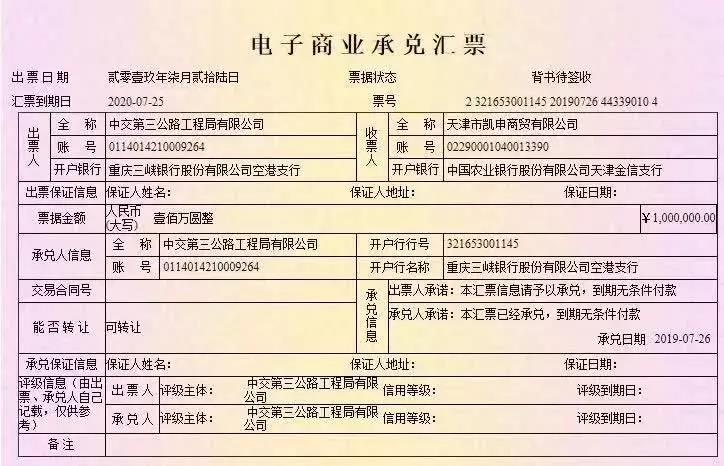 近日,票據(jù)市場(chǎng)上出現(xiàn)了重慶三峽銀行股份有限公司空港支行以中交第三公路工程局有限公司名義出具的電子商業(yè)承兌匯票,重慶三峽銀行股份有限公司空港支行不是中交第三公路工程局有限公司的合作銀行,該商業(yè)承兌匯票不是中交第三公路工程局有限公司出具,請(qǐng)各機(jī)構(gòu)、社會(huì)公眾注意識(shí)別,以免造成損失。