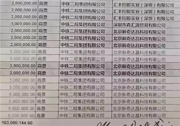 部分中鐵二局假票名單,涉案金額超1億元