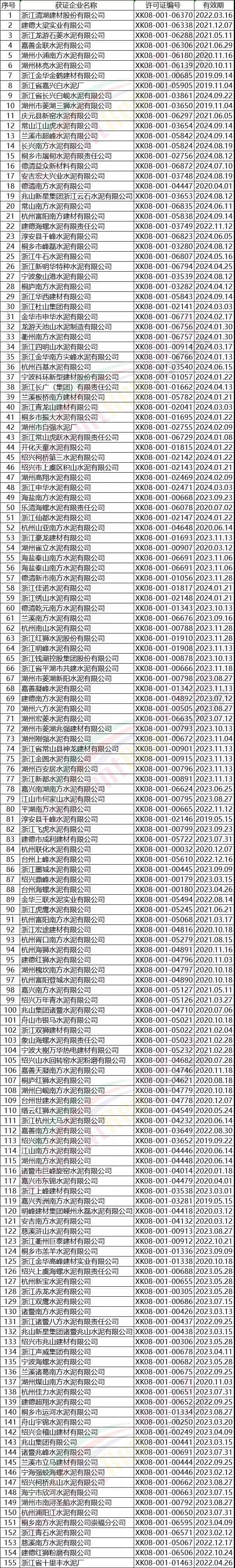 浙江省部分水泥企業(yè)名單