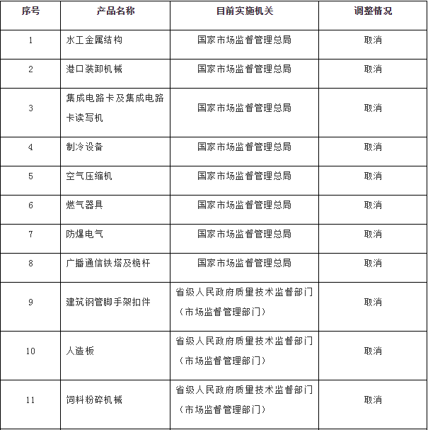 去年2018年9月末,國務(wù)院辦公廳曾發(fā)布《國務(wù)院關(guān)于進一步壓減工業(yè)產(chǎn)品生產(chǎn)許可證管理目錄和簡化審批程序的決定》并公布了《工業(yè)產(chǎn)品生產(chǎn)許可證取消、下放管理權(quán)限的產(chǎn)品目錄》和《調(diào)整后繼續(xù)實施工業(yè)產(chǎn)品生產(chǎn)許可證管理的產(chǎn)品目錄》。
