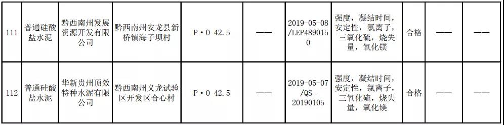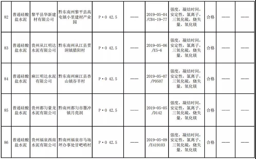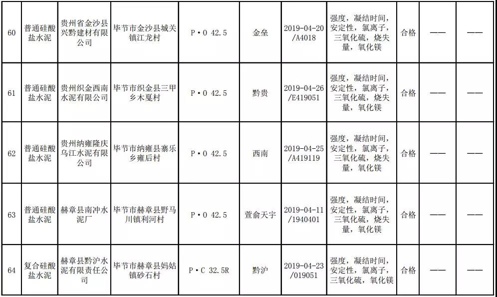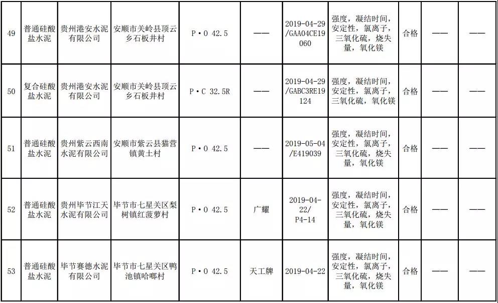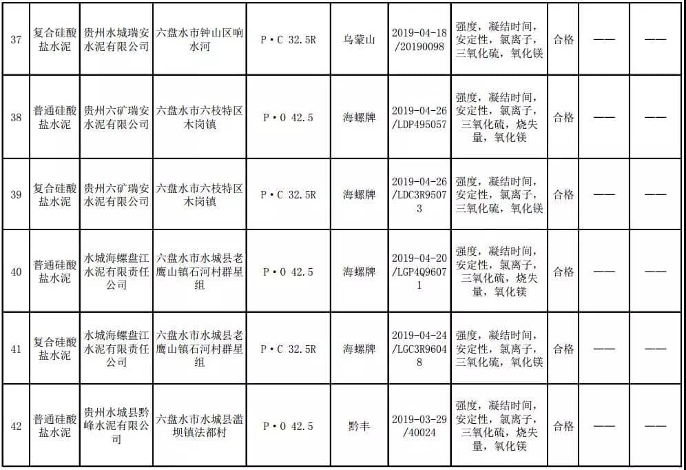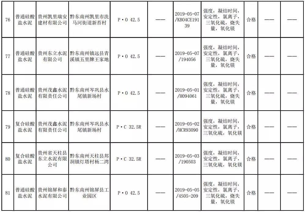 2019年8月13日,貴州省市場(chǎng)監(jiān)督管理局網(wǎng)站公布2019年水泥產(chǎn)品質(zhì)量監(jiān)督抽查結(jié)果。本次監(jiān)督抽查共抽查90家企業(yè)生產(chǎn)的112批次產(chǎn)品,抽查區(qū)域涉及貴陽(yáng)市、遵義市、六盤水市、安順市、畢節(jié)市、銅仁市、黔東南州、黔南州、黔西南州,產(chǎn)品檢驗(yàn)結(jié)果均為合格,問(wèn)題產(chǎn)品檢出率為0%,問(wèn)題企業(yè)發(fā)現(xiàn)率為0%。