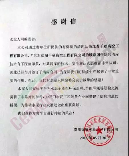 正如貴州錦屏和泰水泥有限公司感謝信里講的,作為水泥行業(yè)的服務(wù)平臺(tái),水泥人網(wǎng)為水泥企業(yè)在環(huán)保治理、節(jié)能降耗等經(jīng)驗(yàn)交流方面提供了非常好的參考,為水泥企業(yè)和設(shè)備企業(yè)之間搭建了信息溝通的橋梁,為推動(dòng)水泥行業(yè)發(fā)展做出了重要的貢獻(xiàn)。
