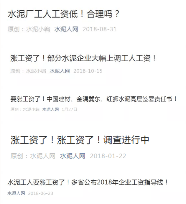 作為水泥行業(yè)中最大的新媒體平臺(tái),水泥人網(wǎng)也時(shí)刻關(guān)注著水泥人們的薪資情況,曾多次呼吁漲薪。