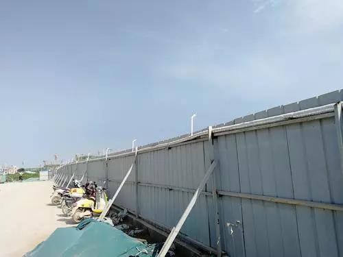 當(dāng)天上午,執(zhí)法人員首選來到鄭東新區(qū)金光路辦事處柳園口村的鄭東新區(qū)金光集體土地租賃房項(xiàng)目工地進(jìn)行檢查,現(xiàn)場(chǎng)發(fā)現(xiàn)該場(chǎng)區(qū)北側(cè)圍擋約200米無防溢基座,工地內(nèi)一臺(tái)非道路移動(dòng)機(jī)械不合格。
