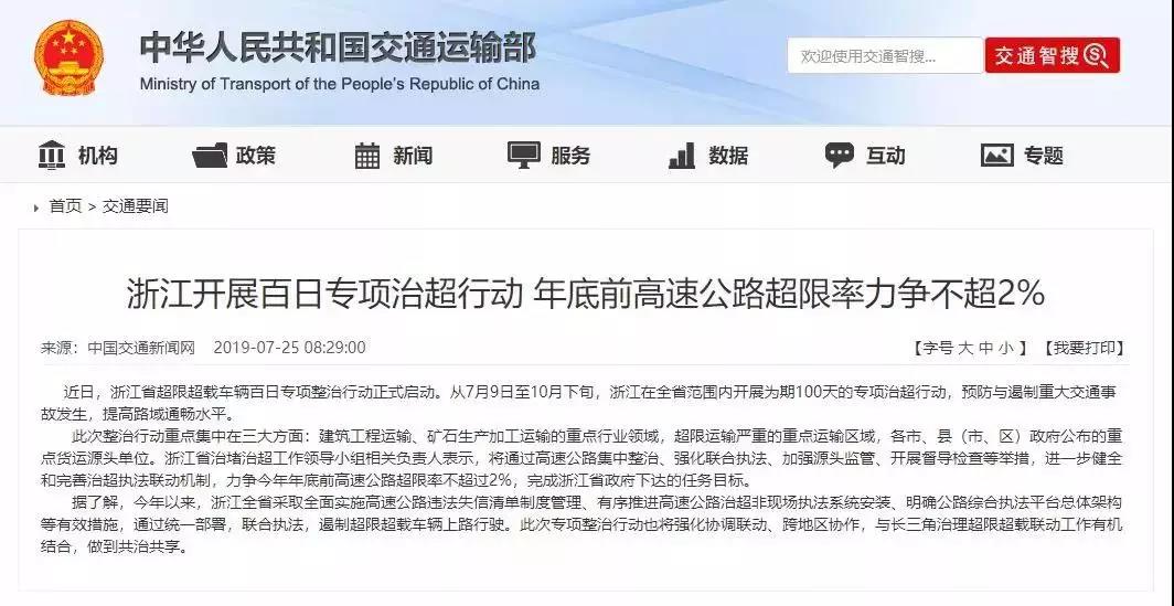浙江:超載企業(yè)入黑名單,年底超限率不超2%