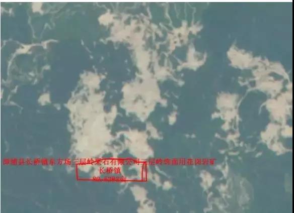長橋鎮(zhèn)東方場三層嶺采石有限公司跨越礦區(qū)開采 周邊大片“掛白”(紅色框內(nèi)為批復(fù)的合法礦區(qū))