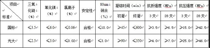 “凱城”牌P·C42.5水泥主要技術(shù)內(nèi)控指標(biāo)與國(guó)標(biāo)對(duì)比