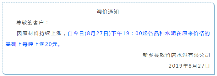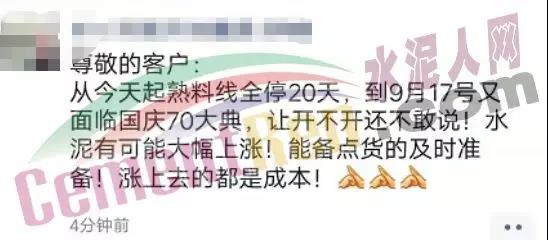 河南開(kāi)封某水泥企業(yè)負(fù)責(zé)人表示:目前開(kāi)封市所有的水泥熟料生產(chǎn)線自8月27日到9月17日全部停產(chǎn),粉磨站目前還沒(méi)有接到停產(chǎn)通知,鑒于熟料停產(chǎn),水泥價(jià)格從28日開(kāi)始也上調(diào)10元/噸。
