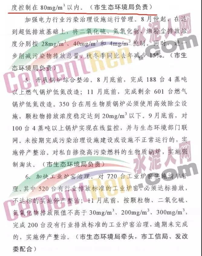 提高水泥、電力行業(yè)的排放要求,5家水泥企業(yè)氮氧化物排放濃度在達(dá)到省要求100毫克/立方米的基礎(chǔ)上,8月份起,通過加強(qiáng)污染治理設(shè)施運(yùn)行管理,將氮氧化物排放濃度控制在80毫克/立方米以來。由南京市生態(tài)環(huán)境局負(fù)責(zé)。