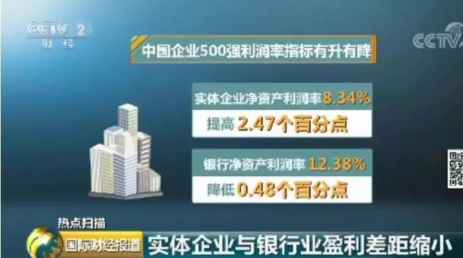 報告顯示,中國企業(yè)500強利潤率指標(biāo)有升有降,其中實體企業(yè)凈資產(chǎn)利潤率為8.34%,提高了2.47個百分點;銀行凈資產(chǎn)利潤率為12.38%,降低了0.48個百分點,一升一降,實體企業(yè)與銀行凈資產(chǎn)利潤率差距進(jìn)一步縮小。