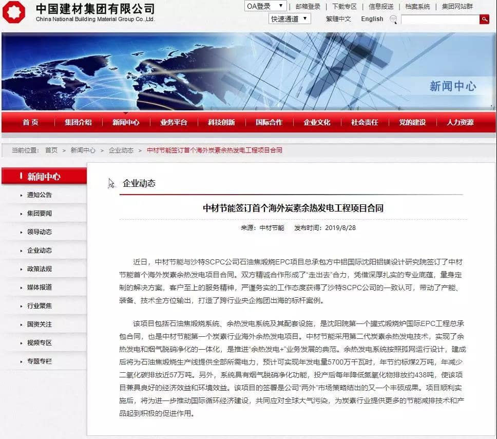 中材節(jié)能簽訂首個(gè)海外炭素余熱發(fā)電工程合同和巴基斯坦余熱發(fā)電工程合同