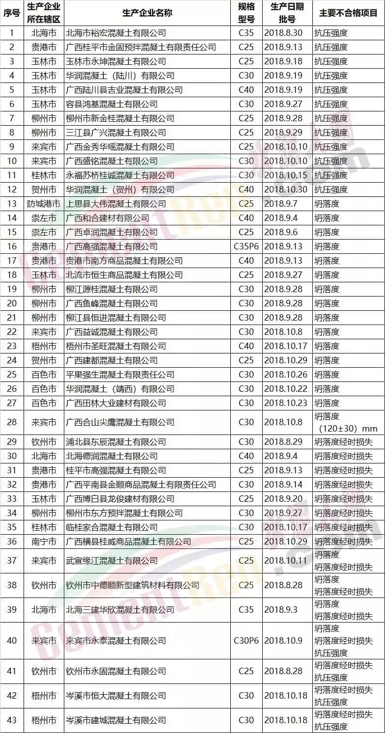 曾因質(zhì)量被通報(bào)的部分混凝土企業(yè)名單: