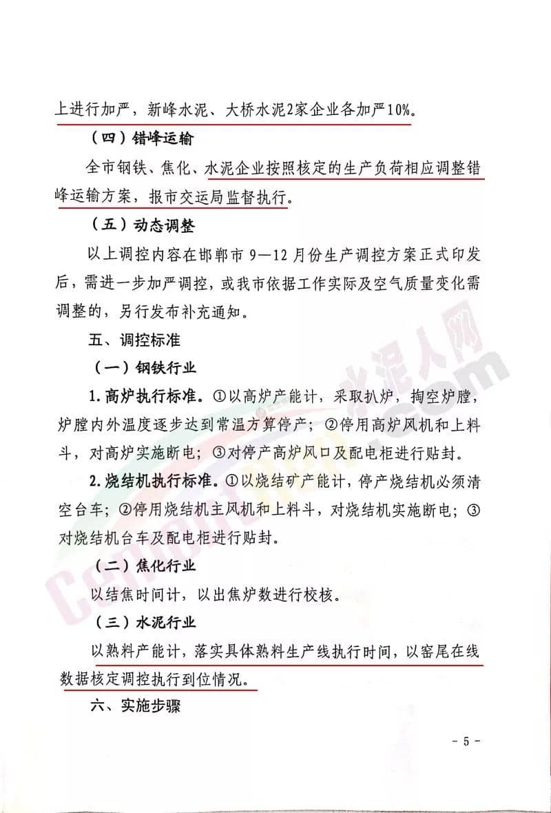 針對(duì)于水泥行業(yè)的調(diào)控原則為,在《邯鄲市2019年重點(diǎn)行業(yè)三季度大氣 污染防治差別化管理方案》核定的生產(chǎn)負(fù)荷基礎(chǔ)上進(jìn)行加嚴(yán),其中新峰水泥、大橋水泥2家企業(yè)各加嚴(yán)10%。