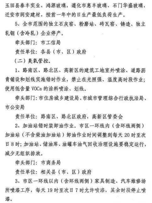 管控行業(yè)包括鋼鐵、焦化、水泥、玻璃、鑄造等工業(yè)企業(yè)。通知要求全市各個(gè)縣區(qū)要將涉及停限產(chǎn)企業(yè)納入停限產(chǎn)清單,要明確到具體企業(yè)、具體裝備、具體時(shí)間和限產(chǎn)產(chǎn)量。文件全文如下: