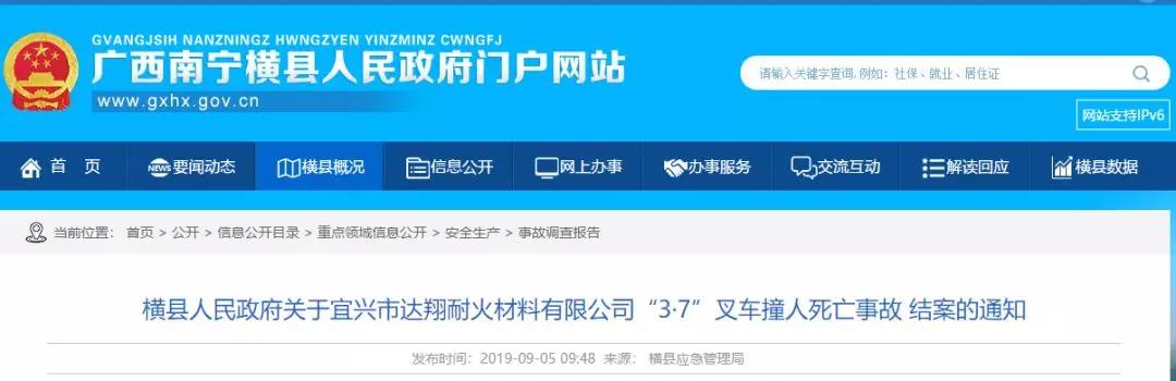 根據(jù)國務(wù)院《生產(chǎn)安全事故報(bào)告和調(diào)查處理?xiàng)l例》的規(guī)定和縣人民政府的授權(quán),縣應(yīng)急管理局牽頭成立了由縣公安局、人力資源和社會(huì)保障局、總工會(huì)等部門共同組成宜興市達(dá)翔耐火材料有限公司“3·7”叉車撞人死亡事故調(diào)查組,同時(shí)邀請(qǐng)縣監(jiān)察委派員參加事故調(diào)查。經(jīng)事故調(diào)查組調(diào)查取證,查明了事故發(fā)生的經(jīng)過和原因,分清了事故責(zé)任,并對(duì)事故相關(guān)單位及其相關(guān)責(zé)任人提出了處理建議和防范措施,形成了事故調(diào)查報(bào)告,并經(jīng)第十七屆橫縣人民政府第86次常務(wù)會(huì)議審議通過?,F(xiàn)將事故結(jié)案的有關(guān)事項(xiàng)通知如下:
