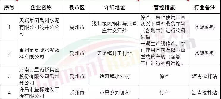 1、停產(chǎn)類企業(yè)。天瑞集團禹州水泥有限公司淺井分公司水泥熟料生產(chǎn)線、河南省湖波靈威水泥集團有限公司一期水泥熟料生產(chǎn)線、燒結(jié)磚瓦企業(yè)(9月6日前停產(chǎn)到位)、瀝青攪拌站自9月5日起停產(chǎn)到位。