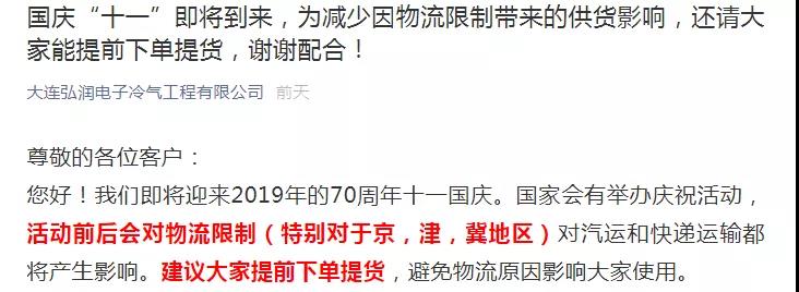 另外,京津冀周邊各大企業(yè)表示:由于十一臨近,河北、天津、北京等華北地區(qū)的貨車將受到限行、停運、禁運的影響。