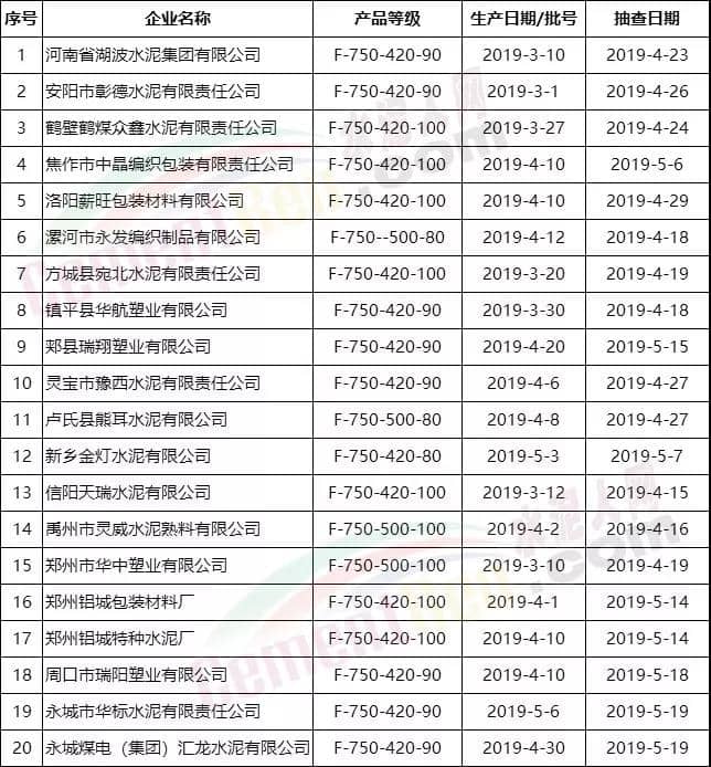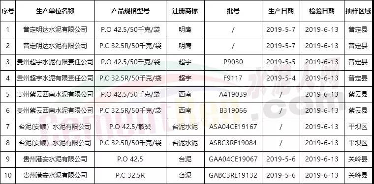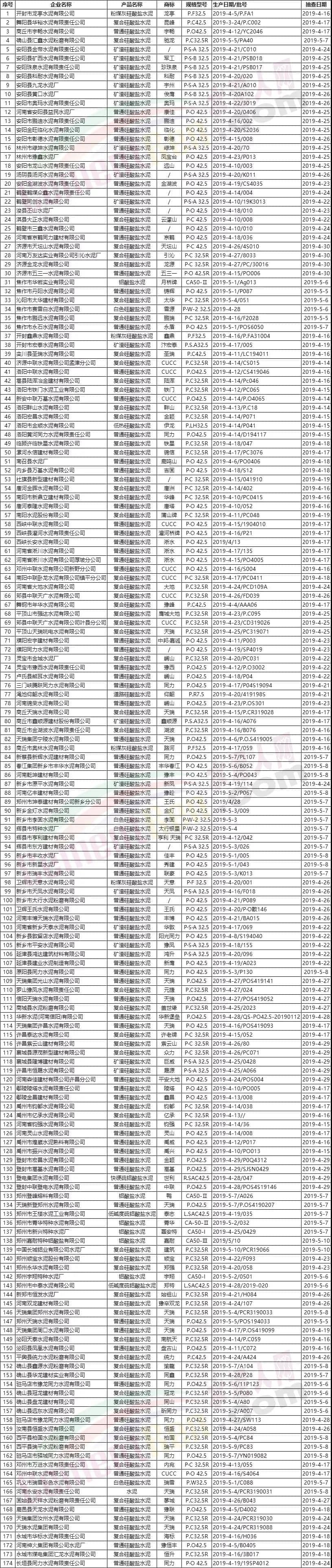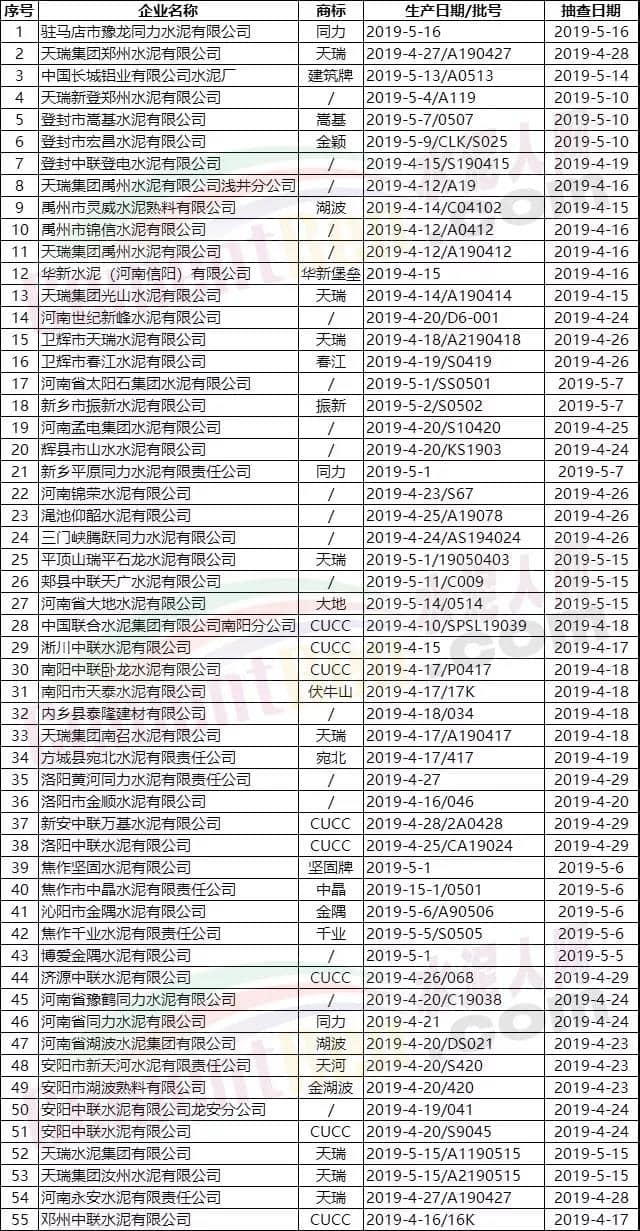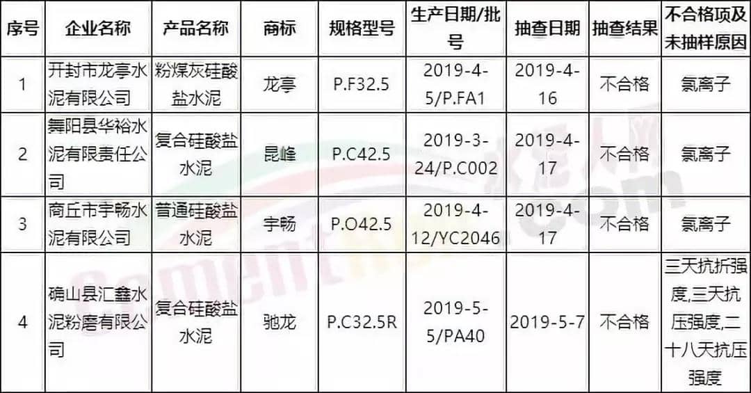 4批次產(chǎn)品不合格。承檢機(jī)構(gòu)為河南省水泥質(zhì)量監(jiān)督檢驗(yàn)中心。