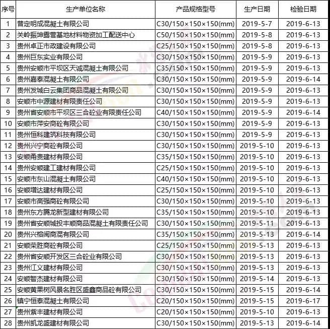 其中紫云自治縣浩翔混凝土有限公司2019年5月10日生產(chǎn)的預(yù)拌混凝土經(jīng)安順市質(zhì)量技術(shù)監(jiān)督檢測(cè)所檢驗(yàn)強(qiáng)度等級(jí)項(xiàng)目不合格。針對(duì)于監(jiān)督抽查中發(fā)現(xiàn)的質(zhì)量不合格產(chǎn)品,已通報(bào)產(chǎn)品生產(chǎn)企業(yè)所在地的縣(區(qū))市場(chǎng)監(jiān)督管理部門(mén)按照《中華人民共和國(guó)產(chǎn)品質(zhì)量法》規(guī)定,迅速啟動(dòng)后處理工作。截止目前市場(chǎng)監(jiān)管部門(mén)已對(duì)上述不合格產(chǎn)品生產(chǎn)企業(yè)開(kāi)展約談,企業(yè)經(jīng)整改后復(fù)查抽檢合格,案件辦理還在進(jìn)行中。