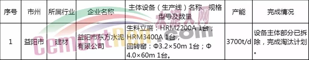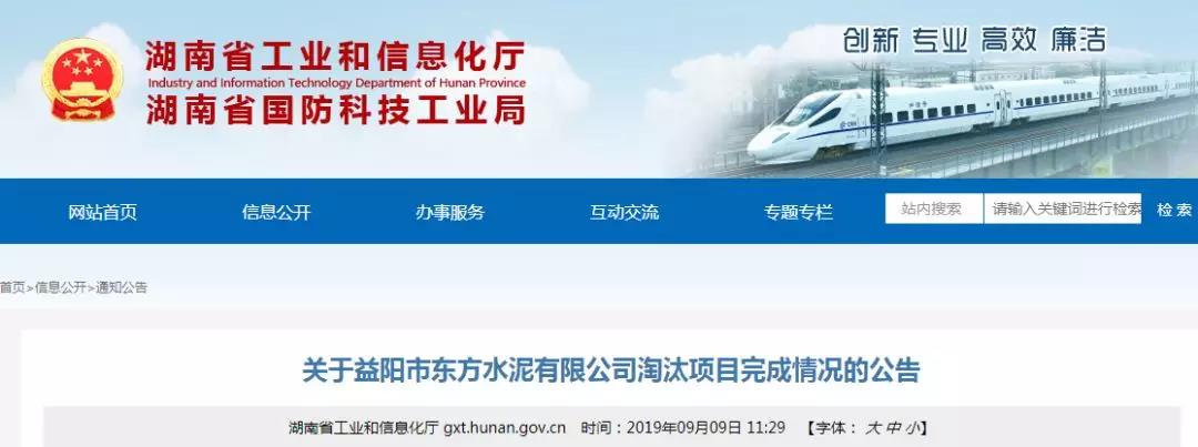 益陽(yáng)市人民政府以《關(guān)于請(qǐng)求對(duì)益陽(yáng)市東方水泥有限公司淘汰退出產(chǎn)能完成情況進(jìn)行公告的函》(益政函〔2019〕102號(hào))提出公告申請(qǐng),現(xiàn)對(duì)益陽(yáng)市東方水泥有限公司淘汰項(xiàng)目完成情況予以公告。