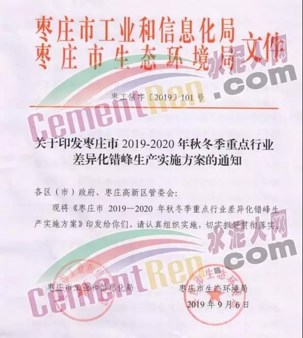 與此同時,水泥大省山東省棗莊市工業(yè)和信息化局、棗莊市生態(tài)環(huán)境局發(fā)布《關于棗莊市2019~2020年秋冬季重點行業(yè)差異化錯峰生產(chǎn)實施方案的通知》稱,為全面打贏藍天保衛(wèi)戰(zhàn),深入推進2019~2020年秋冬季工業(yè)企業(yè)錯峰生產(chǎn),持續(xù)改善全市大氣環(huán)境質量,根據(jù)《山東省大氣污染防治條例》、《山東省打贏藍天保衛(wèi)戰(zhàn)作戰(zhàn)方案暨2013~2020年大氣污染防治三期行動計劃(2018~2020年)》和省、市秋冬季大氣污染防治工作部署,結合我市實際,制定本方案。