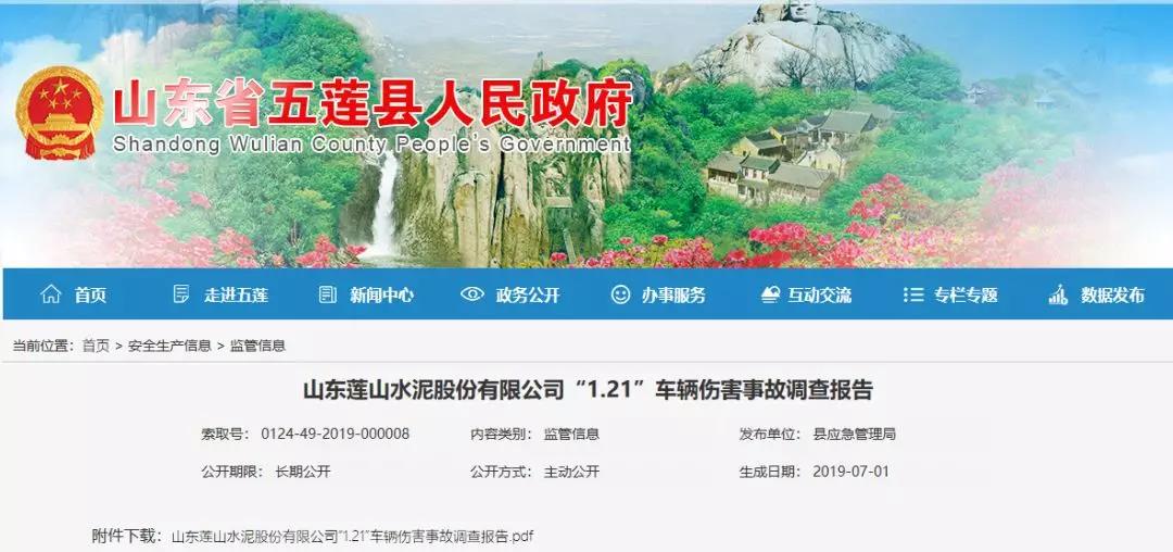 今年7月,山東省五蓮縣人民政府官網(wǎng)發(fā)布了關(guān)于此次事故的調(diào)報(bào)告。報(bào)告全文如下: