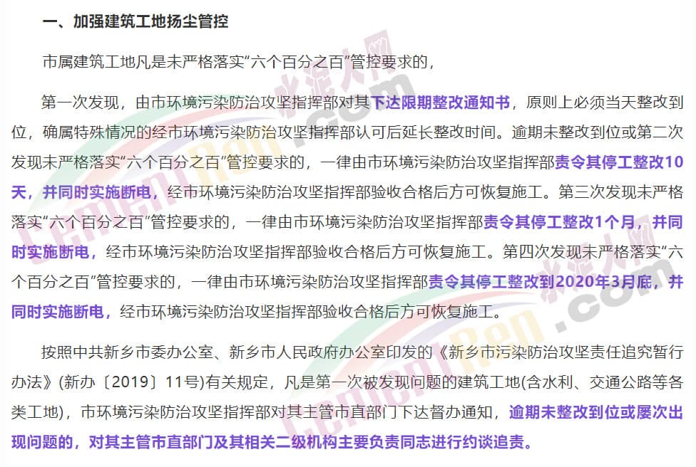 同期,河南省新鄉(xiāng)市也發(fā)布了《關(guān)于進一步加強全市揚塵污染防治工作的緊急通知》文件,對工地揚塵治理做了重點安排部署。(相關(guān)鏈接:水泥大省未落實控管要求或?qū)⒚媾R整改斷電、約談追責、停產(chǎn)到明年3月底!)