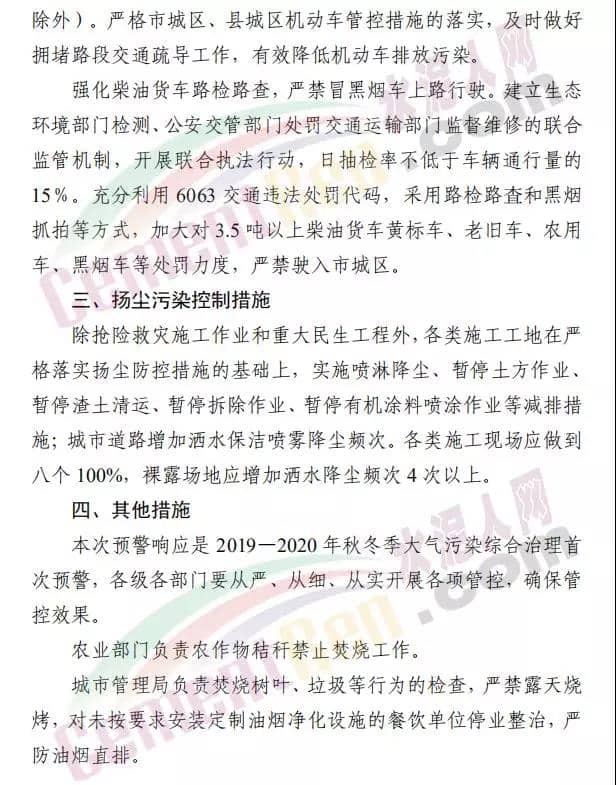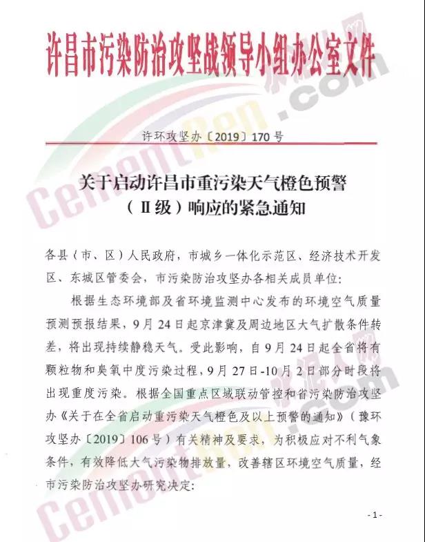 日前,繼河南省新鄉(xiāng)市,安陽市發(fā)布重污染天氣紅色預警后,開封市也發(fā)布了紅色預警通知。通知要求所轄區(qū)區(qū)域于2019年9月24日0時啟動紅色預警(Ⅰ)級響應(yīng),預警解除時間另行通知 。通知要求水泥粉磨站、露天石材加工等行業(yè)實施停產(chǎn)措施。