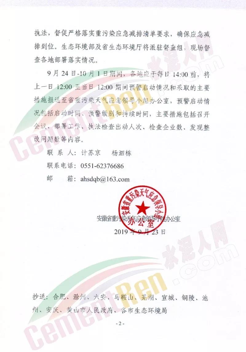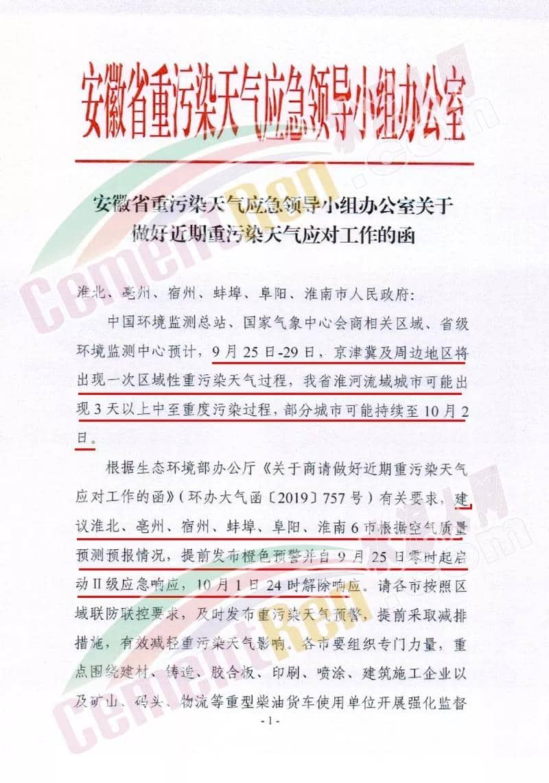 日前,安徽省重污染天氣應(yīng)急領(lǐng)導(dǎo)小組辦公室發(fā)布《關(guān)于做好近期重污染天氣應(yīng)對工作的函》建議淮北、亳州、宿州、蚌埠、阜陽、淮南6市根據(jù)空氣質(zhì)量預(yù)測預(yù)報情況 ,提前發(fā)布橙色預(yù)警并自9月25日零時起啟動II級應(yīng)急響應(yīng)。10月1日24時解除響應(yīng)。全文如下: