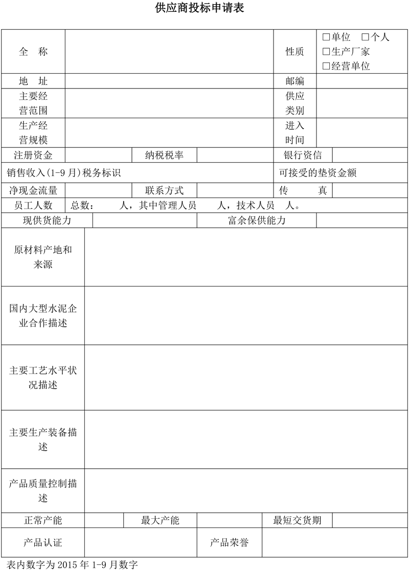 1、資料文件包括:企業(yè)主要資質(zhì)證明文件(加蓋公章);檢修安裝型企業(yè)除提供主要資質(zhì)證明文件外還需提供安全生產(chǎn)許可證、質(zhì)量體系認(rèn)證證書等相關(guān)資質(zhì)文件;聯(lián)系人基本信息;招標(biāo)商投標(biāo)報(bào)名申請(qǐng)表、近三年業(yè)績(jī)清單。