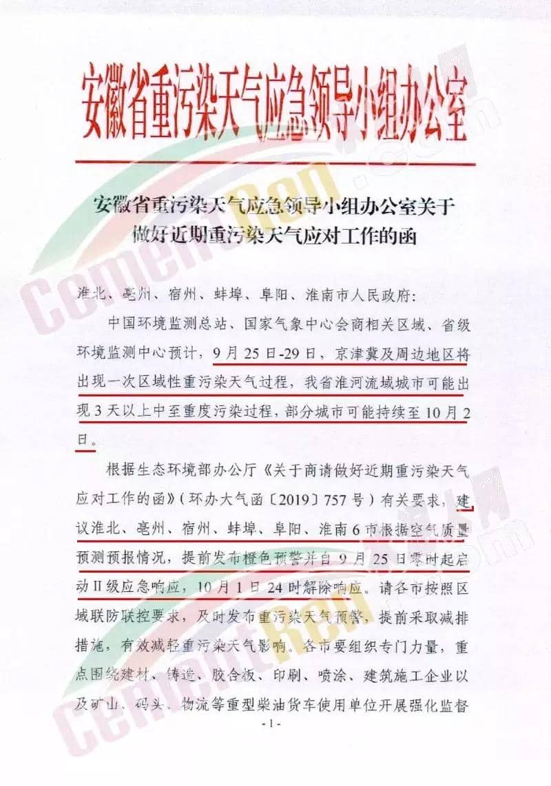 除此之外,安徽省重污染天氣應(yīng)急領(lǐng)導(dǎo)小組辦公室關(guān)于做好近期重污染天氣應(yīng)對(duì)工作的函也明確指出,淮北、亳州、宿州、蚌埠、阜陽(yáng)、淮南區(qū)域根據(jù)質(zhì)量預(yù)測(cè)預(yù)報(bào)情況,自10月1日24時(shí)起解除II級(jí)應(yīng)急響應(yīng)。