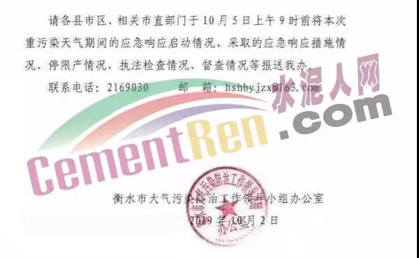 據(jù)水泥人網(wǎng)消息,衡水市大氣污染防治工作領(lǐng)導(dǎo)小組辦公室發(fā)布《關(guān)于解除重污染天氣II級(jí)(橙色)應(yīng)急響應(yīng)的通知》稱,根據(jù)《關(guān)于解除重污染天氣II級(jí)應(yīng)急響應(yīng)的通知》(冀氣領(lǐng)辦【2019】195號(hào))的精神,經(jīng)省環(huán)境應(yīng)急與重污染天氣預(yù)警中心與中國(guó)環(huán)境監(jiān)測(cè)總站、省環(huán)境氣象中心聯(lián)合會(huì)商,預(yù)計(jì)10月3日夜間起,西北冷空氣自北向南影響河北省,污染逐步清除。預(yù)計(jì)4日衡水市本次污染過(guò)程基本結(jié)束,按上級(jí)要求,經(jīng)衡水市大氣污染防治工作領(lǐng)導(dǎo)小組批準(zhǔn),衡水市定于10月4日8時(shí)解除本次重污染天氣應(yīng)急響應(yīng)?! ≡娜缦拢?img alt="" src="http://m.ifaga.cn/uploadfile/2019/1008/20191008042054297.jpg" />