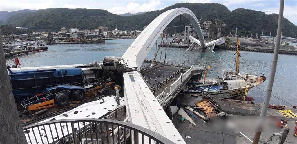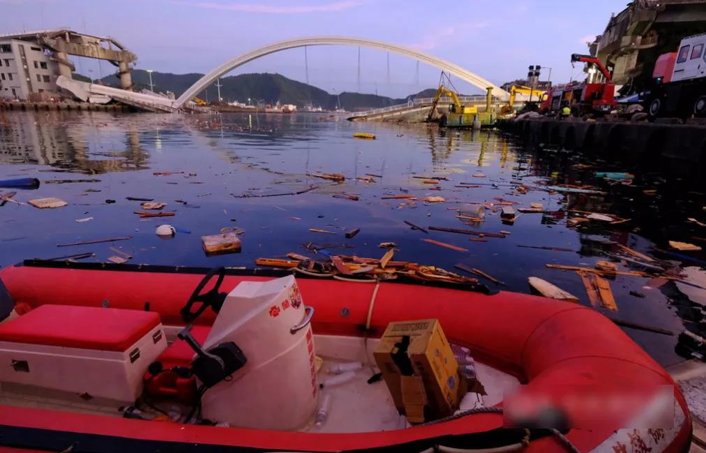 大橋使用20年即坍塌,事發(fā)原因尚待厘清 “中央社”報道稱,2日清晨6時左右,天色逐漸變亮,港灣的水面上布滿油污和船體被支解的木塊、木屑,空氣中彌漫著濃濃的柴油味。而橋梁倒塌后,連帶壓倒電線,引發(fā)2400戶家庭停電;同時也堵塞航道,令南方澳漁港內(nèi)800艘漁船進出不得。